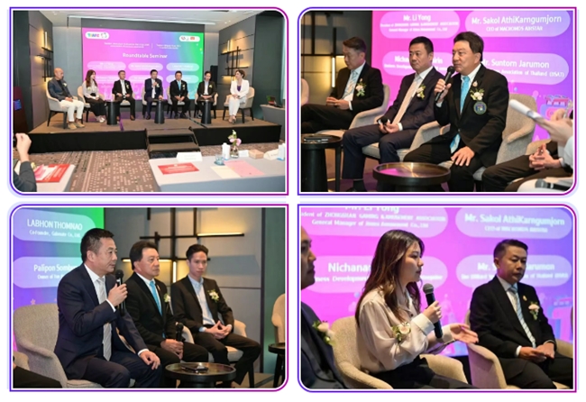 圓桌研討會上,中山市游戲游藝行業(yè)協(xié)會會長、廣東金馬游樂股份有限公司總經(jīng)理李勇、泰國臺球協(xié)會會長Mr.Suntorn Jarumon、MACROMOS AIRSTAR首席執(zhí)行官Mr.Sakol AthiKarnGumJorn、Solid enterprise業(yè)務(wù)發(fā)展主管Ms.Nichanan Tantasirin、Gabenate Co., Ltd.聯(lián)合創(chuàng)始人Mr.Labhon Thomnao、TON Praram3品牌創(chuàng)始人 Mr.Palipon Sombun等嘉賓圍繞“體育商業(yè)經(jīng)濟(jì)助力下泰國旅游娛樂的未來”主題展開深度對話。各方觀點碰撞交融,為產(chǎn)業(yè)發(fā)展提供了兼具前瞻性與實操性的思路建議。
