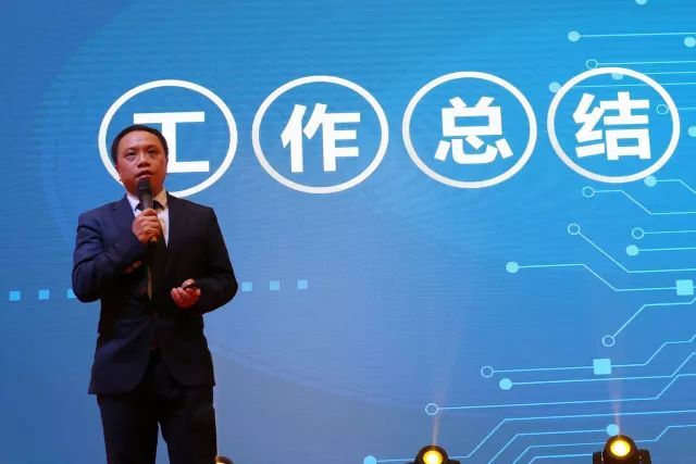 集體合唱結(jié)束后,王照云董事長信步走上舞臺,向現(xiàn)場嘉賓與鴻威全體員工進(jìn)行工作匯報(bào)。