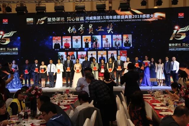 鴻威集團(tuán)15周年感恩盛典暨2018感恩大會已進(jìn)入尾聲,鴻威集團(tuán)全體員工一同上臺謝幕合影。