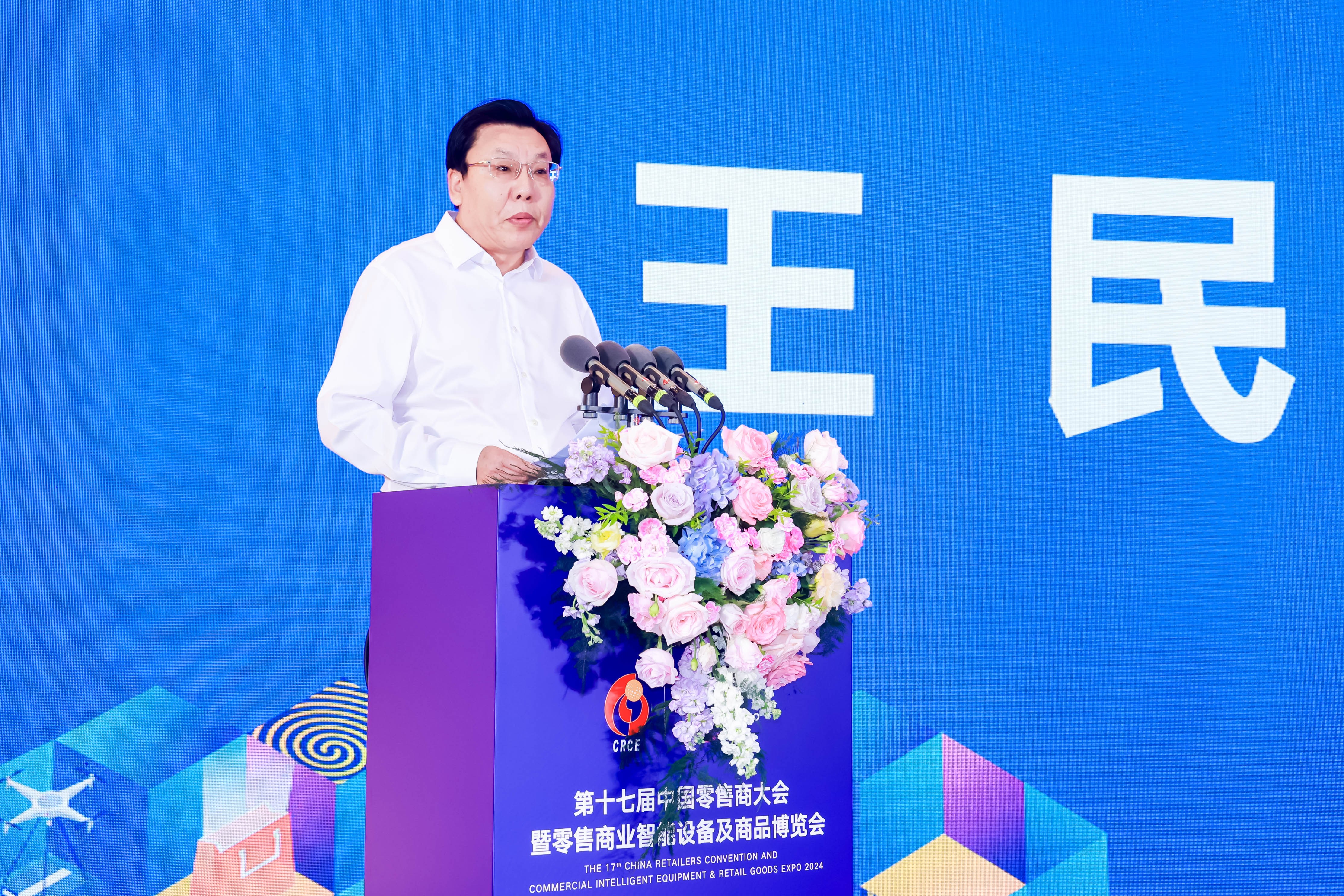 大會(huì)暨展會(huì)開幕式環(huán)節(jié)中國(guó)商業(yè)聯(lián)合會(huì)黨委書記、會(huì)長(zhǎng)姜明、十一屆全國(guó)政協(xié)經(jīng)濟(jì)委員會(huì)副主任、商務(wù)部原副部長(zhǎng)、中國(guó)商業(yè)聯(lián)合會(huì)原會(huì)長(zhǎng)張志剛、廣東鴻威國(guó)際會(huì)展集團(tuán)董事長(zhǎng)王照云先后發(fā)表致辭,開幕式由中國(guó)商業(yè)聯(lián)合會(huì)執(zhí)行會(huì)長(zhǎng)兼秘書長(zhǎng)王民主持。